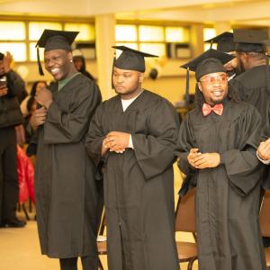 Students wait to walk across the stage during a 548 Foundation graduation ceremony.
